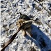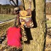 Složení: umělá kožešina, polypropylenový popruh, nepromokavý polyester, guma, duté vlákno, softshell, plastové pískátko